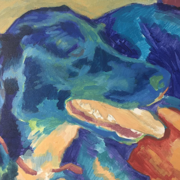 Seriously though – this represents my first true attempt at straight portraiture of the human species, although my friends originally considered this their pet portrait! Poor Jerri. It’s amazing how the slightest alteration or shift in a facial feature can completely throw off the recognition factor or make something look odd. I discovered that human portraits require a great deal more precision than animal portraits. Another process I worked through was building up the skin in layers. There are so many colors and tones inherent in the skin, and not all of them are distinct yellows, reds, tans, etc. If you look at your own hands now, you will see the majority of your skin reflects a transitional gray tone, depending on the lighting. Finding the balance between tone and depth in Jerri’s face and hands was a challenge. I’m excited to take on more portrait projects so I can keep exploring how to paint human skin.