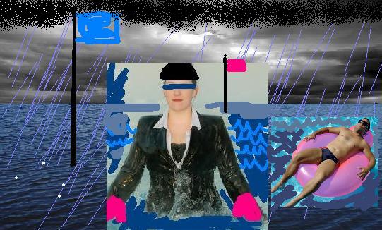 Unfortunately for man with drapes, there were very few viewers. This painting featured in a solo show at the now defunct Pi Bar (a MPLS GLBT night club), then hung on my studio’s wall for awhile. When I went to France, the boyfriend of a friend threw it in a dumpster after they had a fight. A loyal girlfriend of mine drove to the suburbs to rescue the piece, which was returned to me upon my return from France, months later. Man with drapes hung happily on my studio apartment wall for a time, and it was the favorite painting of my then long-distance boyfriend. When we broke up, I was maudlin. I piled all things that reminded me of him into a box, including a tiny plastic christmas tree, and this painting. I had ripped it from its stretcher and rolled up the canvas, shoving all into a box. I was going to send everything to him, but instead the box sat in my closet for over a year. Much later, in a purging mood, I decided to throw out the box. I had forgotten man with drapes was there entombed, and didn’t bother to remove the layers of packing tape securing the carton’s edges. Ultimately, man with drapes met his end in a crappy neighborhood dumpster, and is now lying buried under a trash heap, I presume.